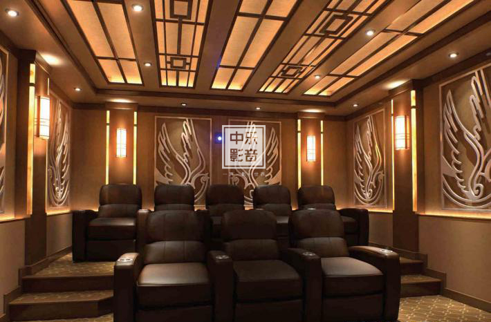 其一:建聲處理:避免過多硬面為主的裝飾物,如大面積的玻璃、石材等,這種裝修對中高頻反射過強,會影響多聲道影院音效的清晰度,可適當增加軟透聲類吸音體,如軟包、布藝沙發(fā)等,減少高頻反射聲。如能適當采用漫反射類擴散體和角落低頻陷阱等建聲裝置則效果更好。還有門窗等隔音效果也需考慮在內,以免聲泄漏影響到相鄰包房間的觀影效果。